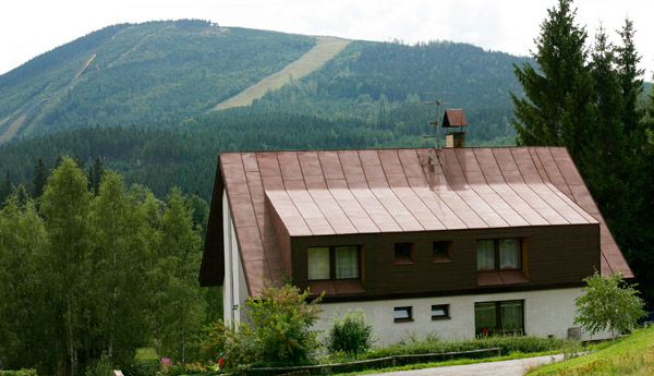 Pension rodinného typu na jižní stráni s výhledem na hřebeny Krkonoš a skokanské můstky